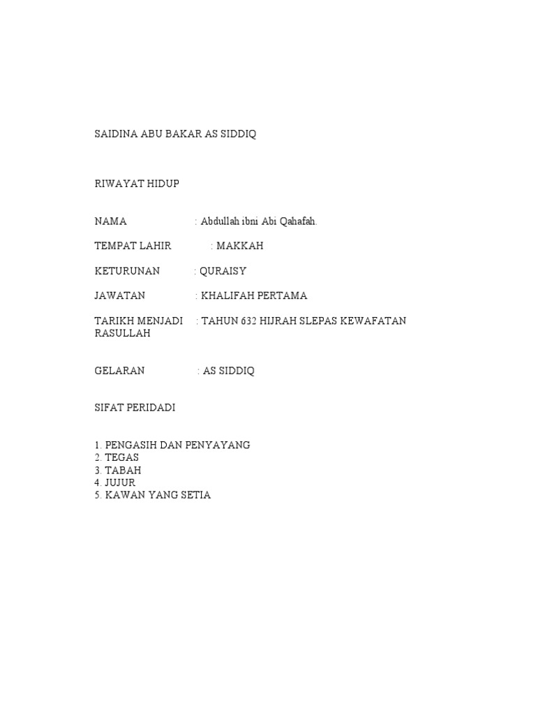 Ejercicio De Biodata Saidina Abu Bakar As Siddiq R A